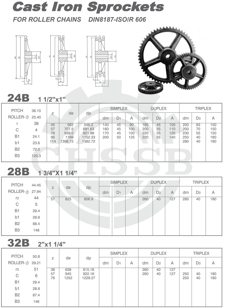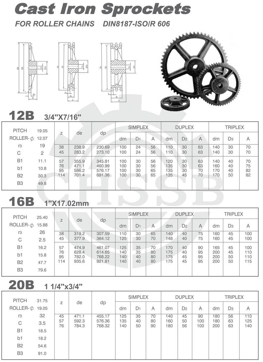 B-臺式鏈輪;S-Single單排,D-Double雙排,T-Triple三排;Pitch節距;歐標用毫米(Metric,mm),美標用