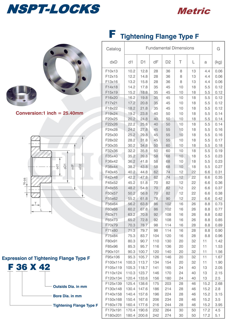 美標/歐標 | F(Tightening Flange Type F)(Metric) | F10x13至F180x201 |