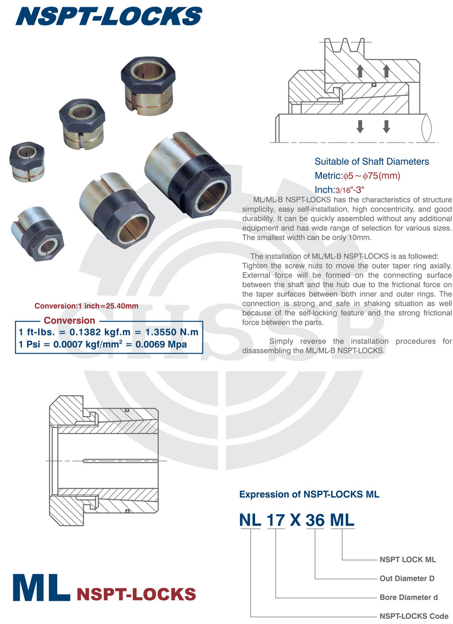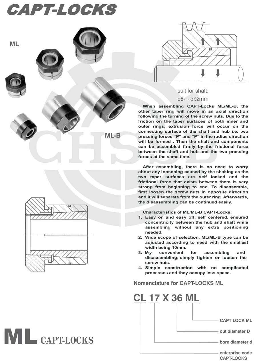 母,使螺母松開,內(nèi)外環(huán)即可分離,拆卸很容易完成。ML/ML-B型脹緊聯(lián)結(jié)套的使用特征:裝卸方便、自動(dòng)定心、